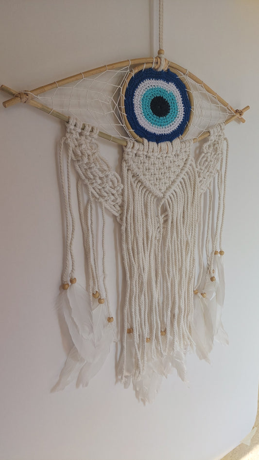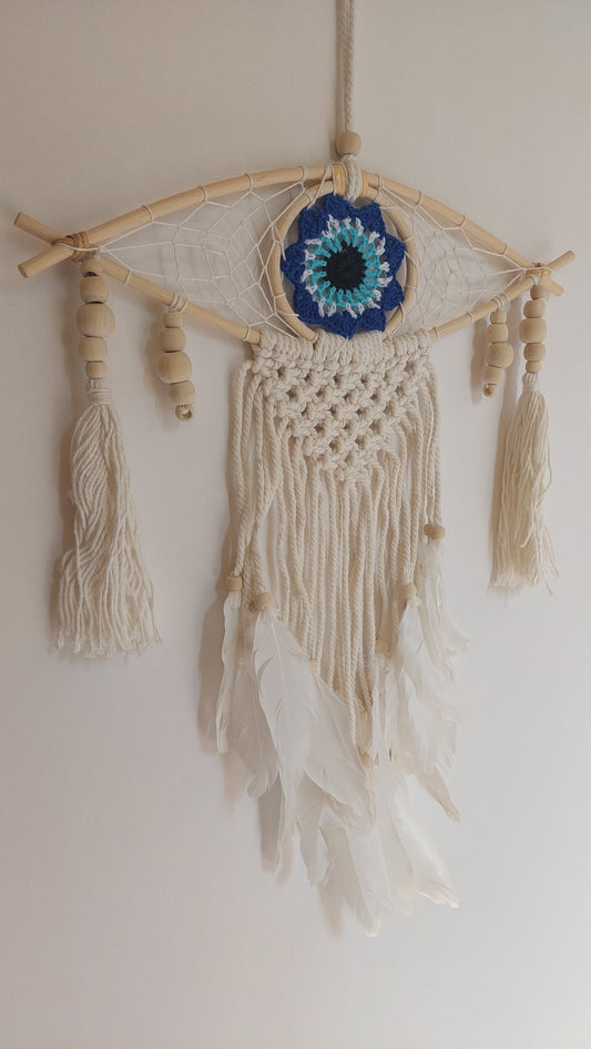 Atrapasueños Ojo Turco Aro Bambú Macrame y Plumas