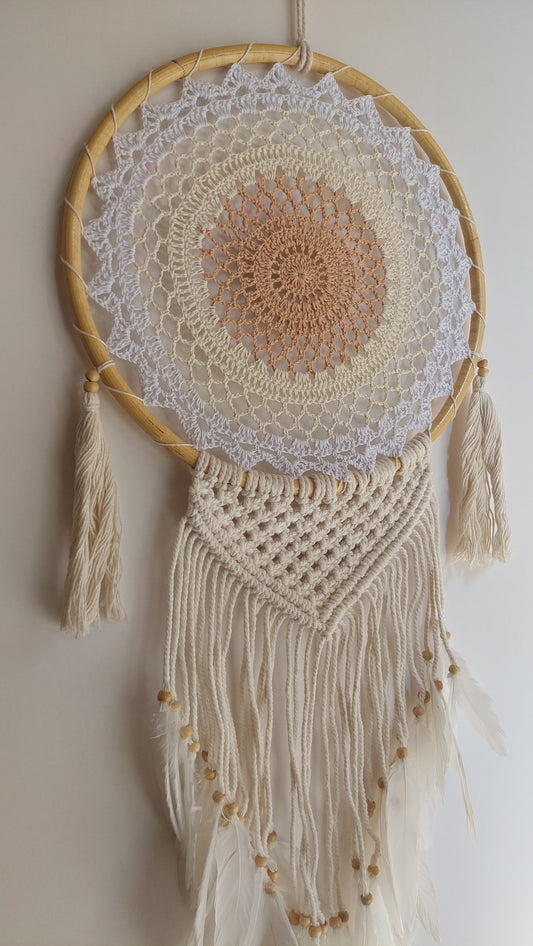 Atrapasueños MEDIANO Tejido y Macrame (blanco)