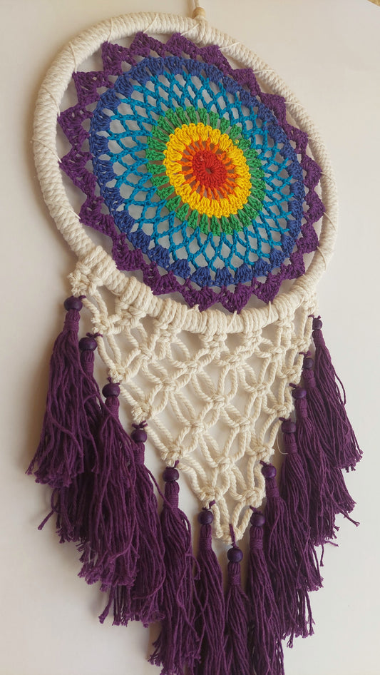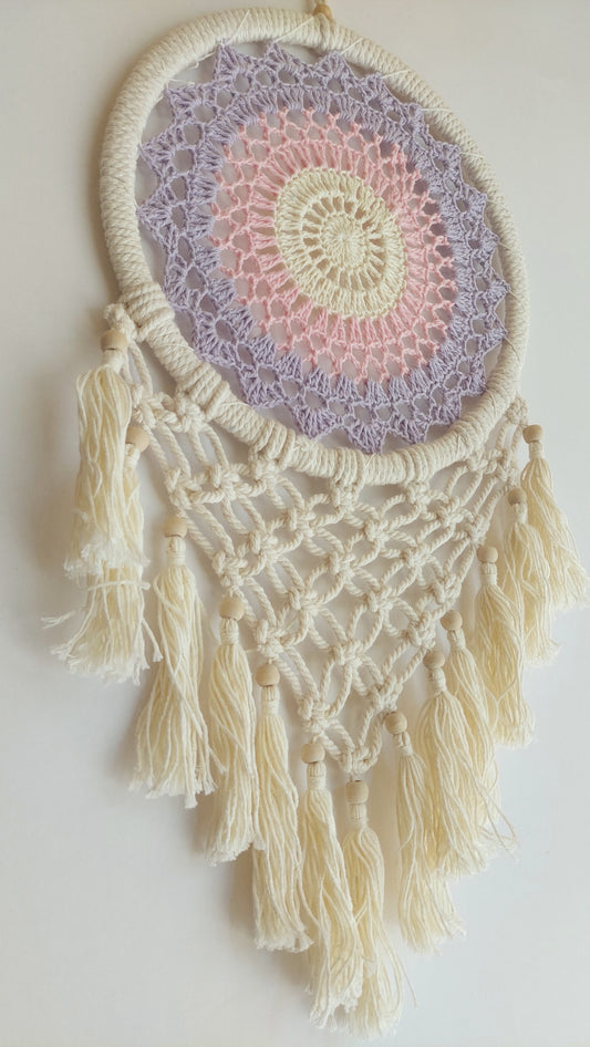 Atrapasueños Tejido y Macrame (blanco y lila)