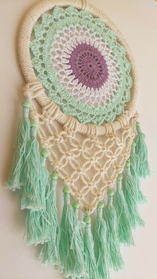 Atrapasueños Tejido y Macrame (blanco y menta)