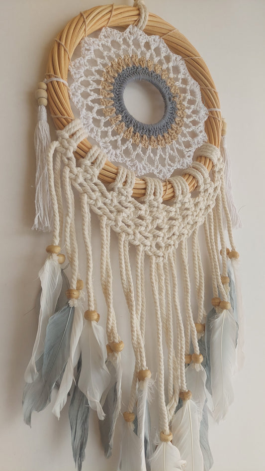 Atrapasueños Tejido y Macrame (blanco y blanco)