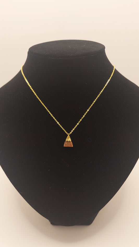 Collar con dije triangular en Cuarzo Venturina