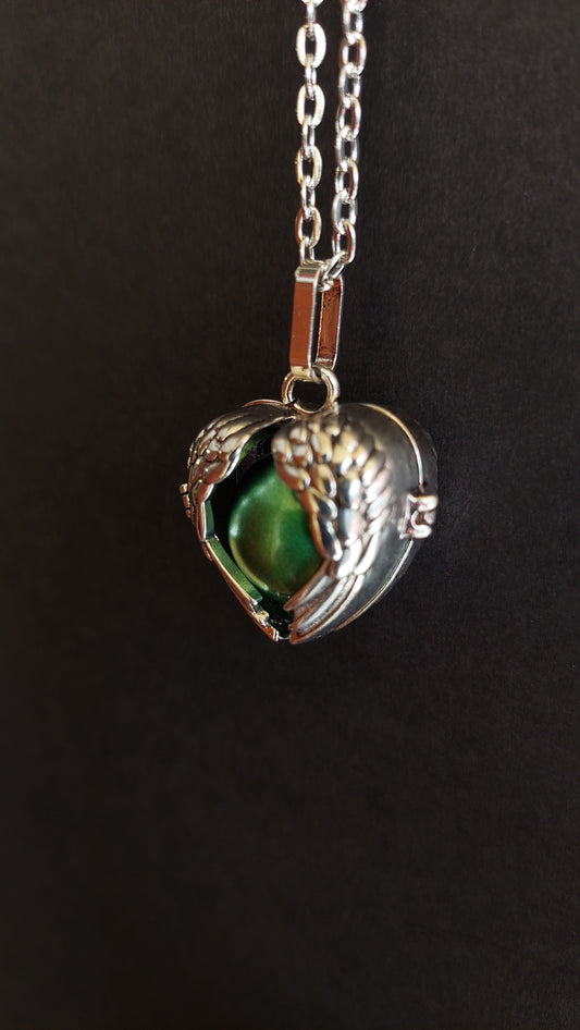 Llamador de Ángeles / Corazón 2 alas PLATA cascabel verde