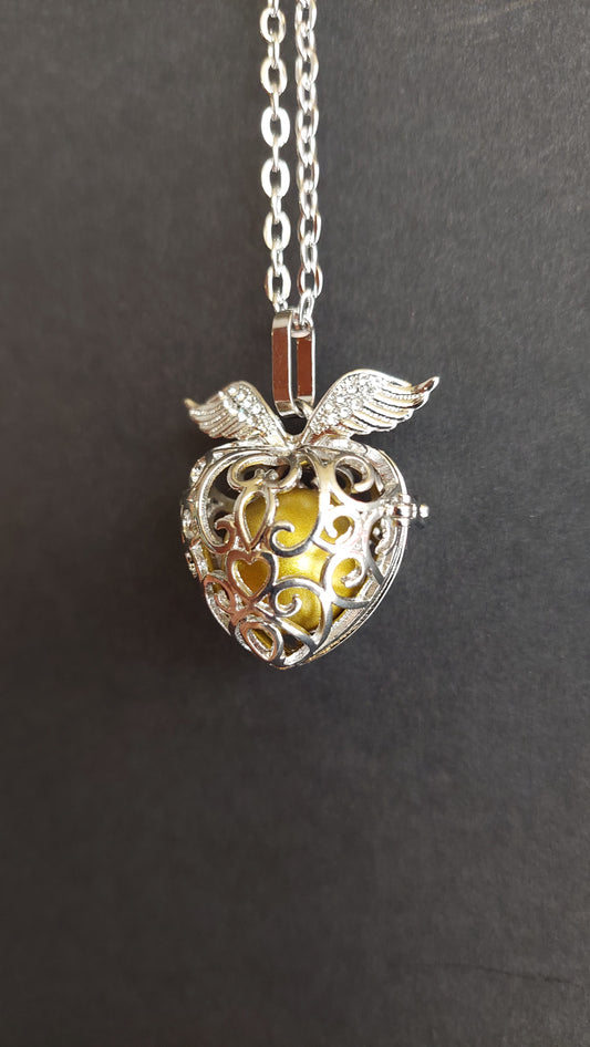 Llamador de Ángeles / Corazón 2 alas PLATA cascabel oro