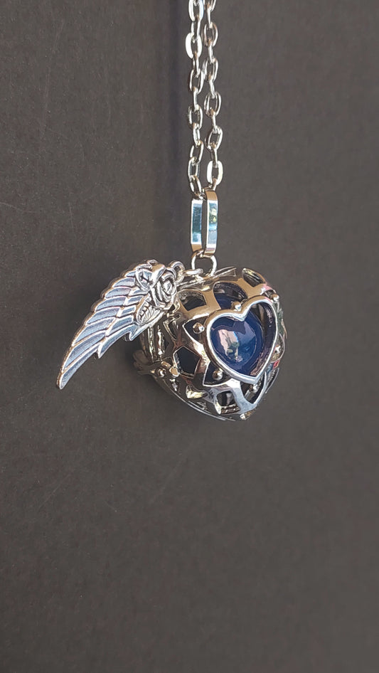 Llamador de Ángeles / Corazón DORADO 2 alas cascabel azul oscuro