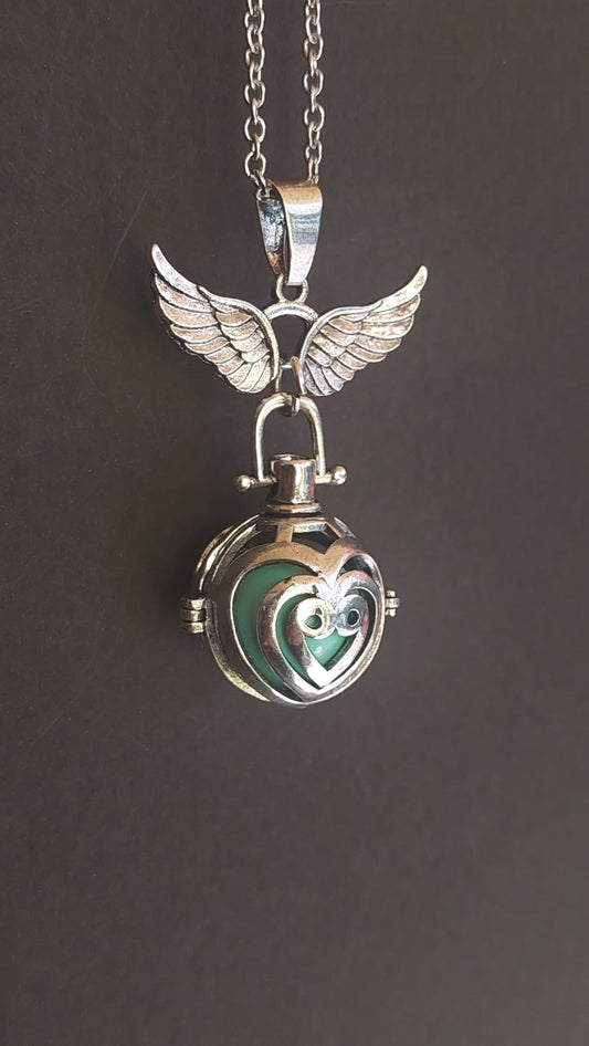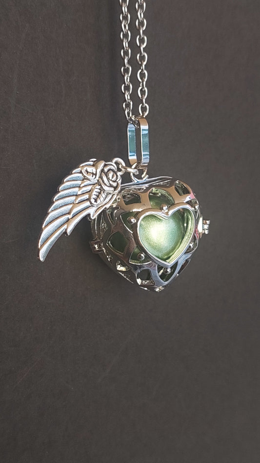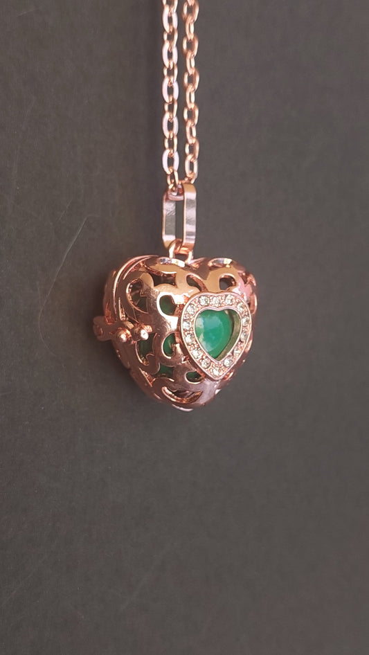 Llamador de Ángeles / Corazón ORO ROSA cascabel verde