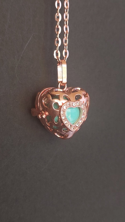 Llamador de Ángeles / Corazón ORO ROSA cascabel menta