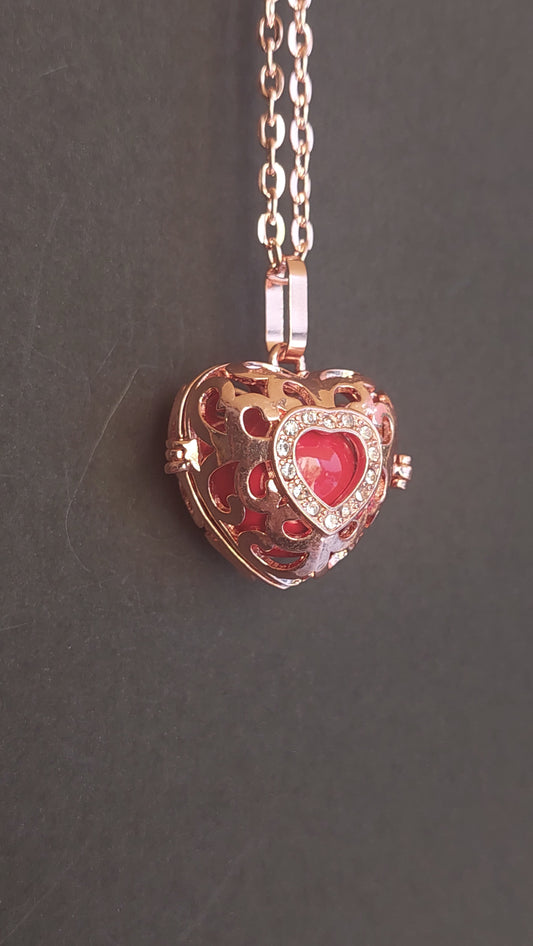 Llamador de Ángeles / Corazón ORO ROSA cascabel rojo