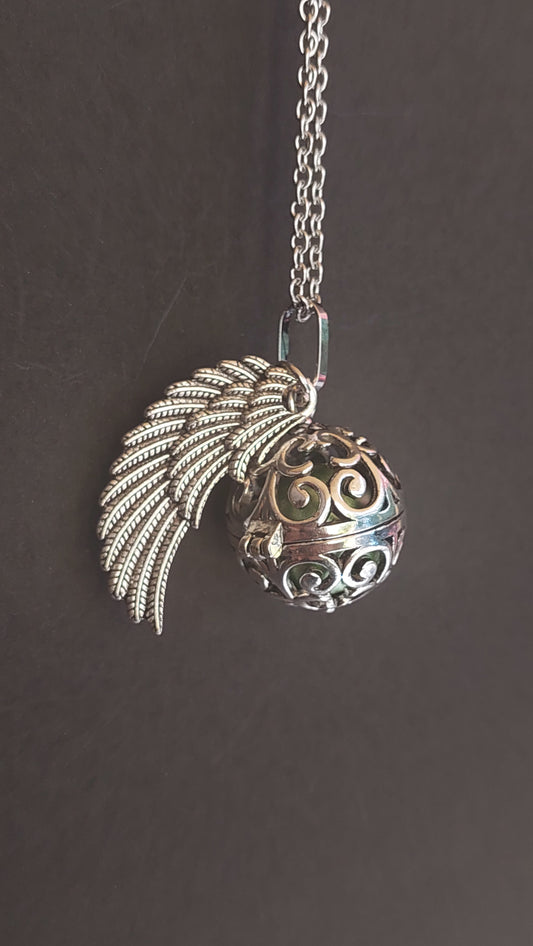 Llamador de Ángeles / Esfera con Arabescos y 1 ala verde metálico