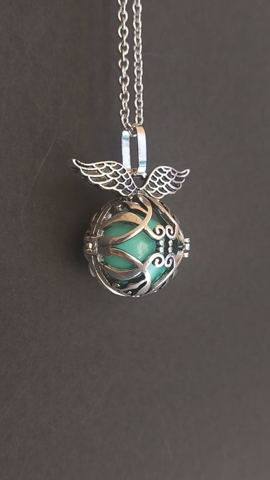 Llamador de Ángeles / Esfera con Angelito Verde Metálico