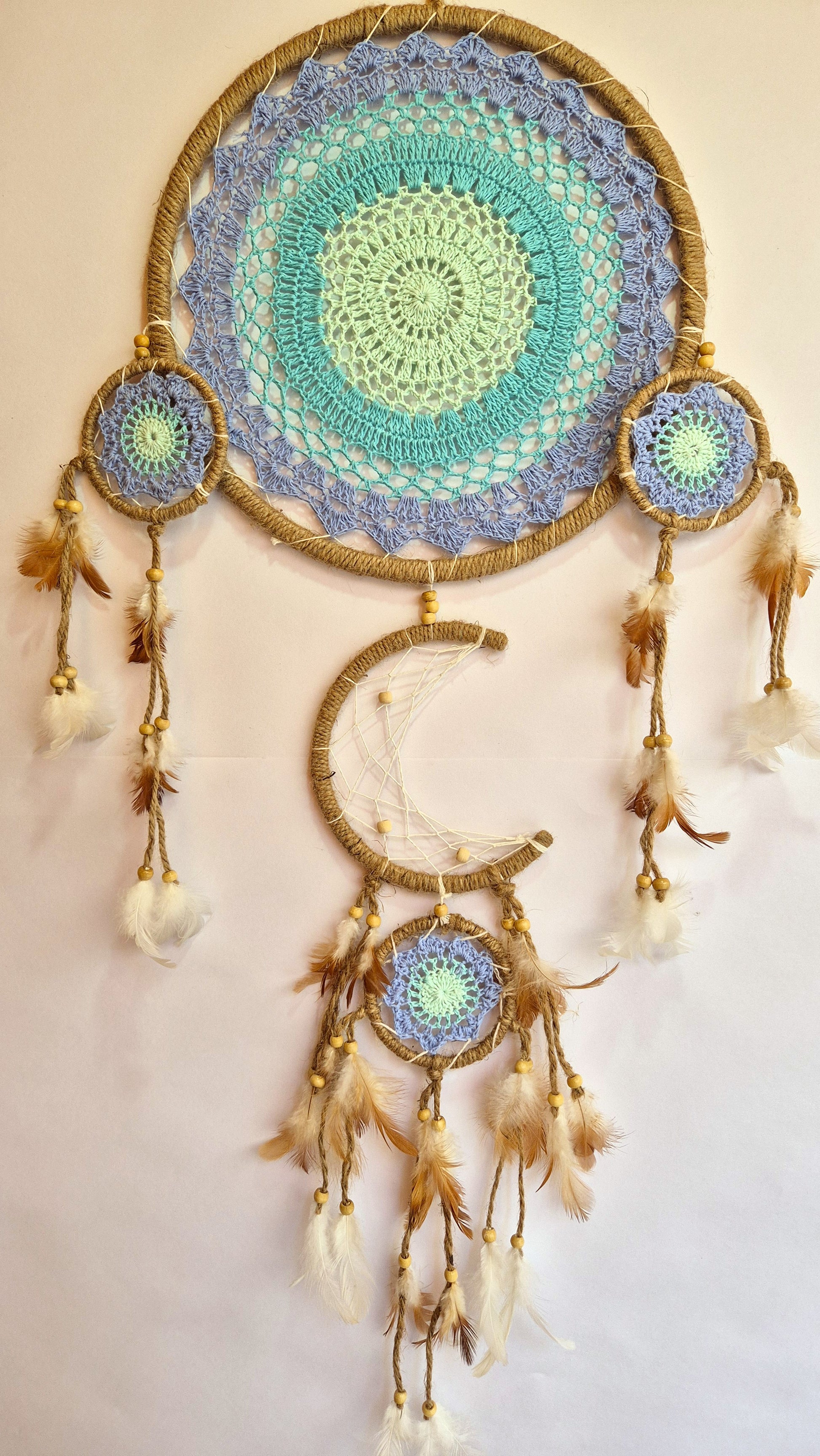 Atrapasueños GRANDE circulos, luna y plumas