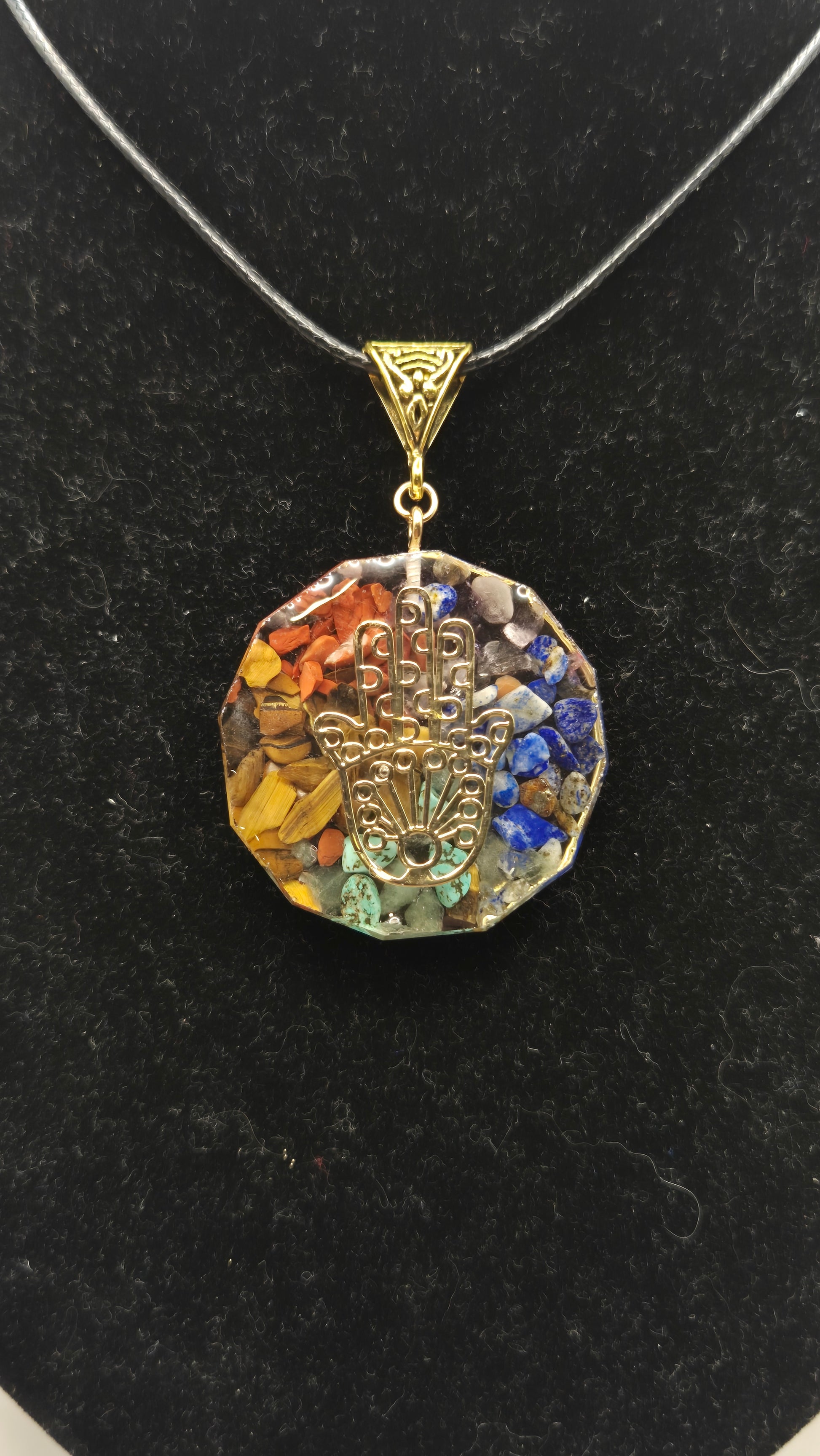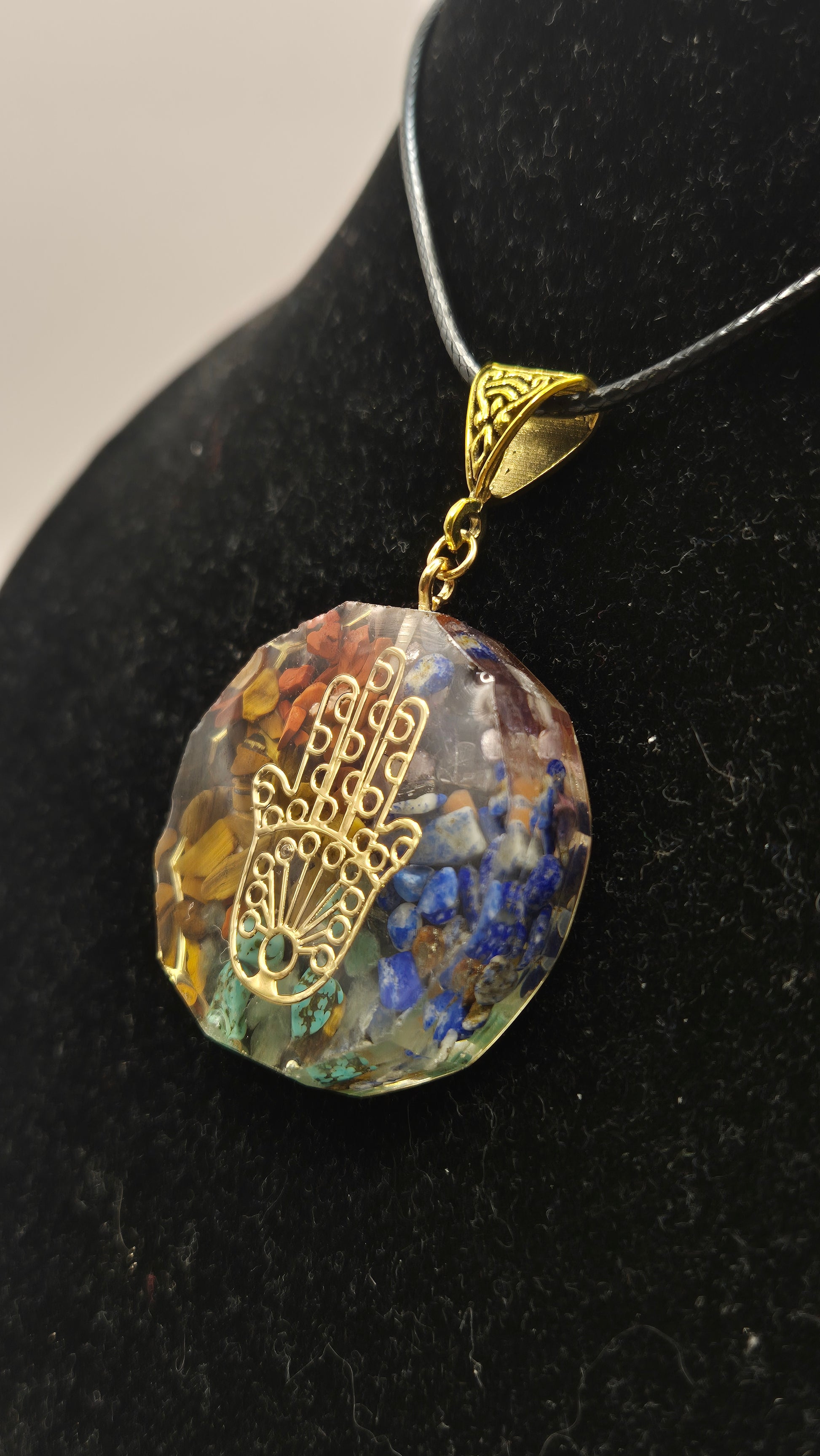 Collar dije Orgonita Mano de Hamsa (color 1)