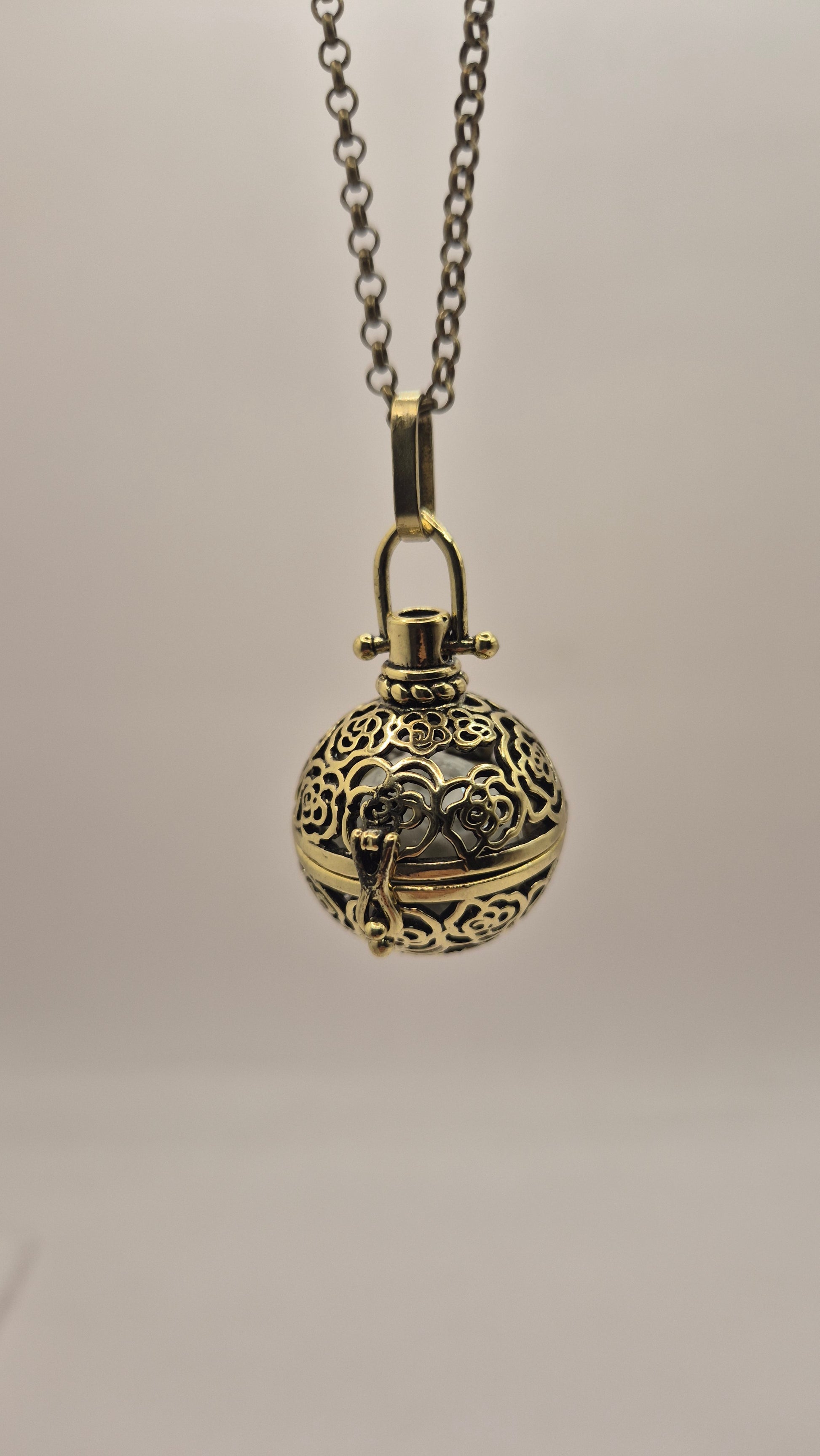 Llamador de Ángeles / Esfera DORADO ANTIGUO con Rosas / Cascabel Blanco
