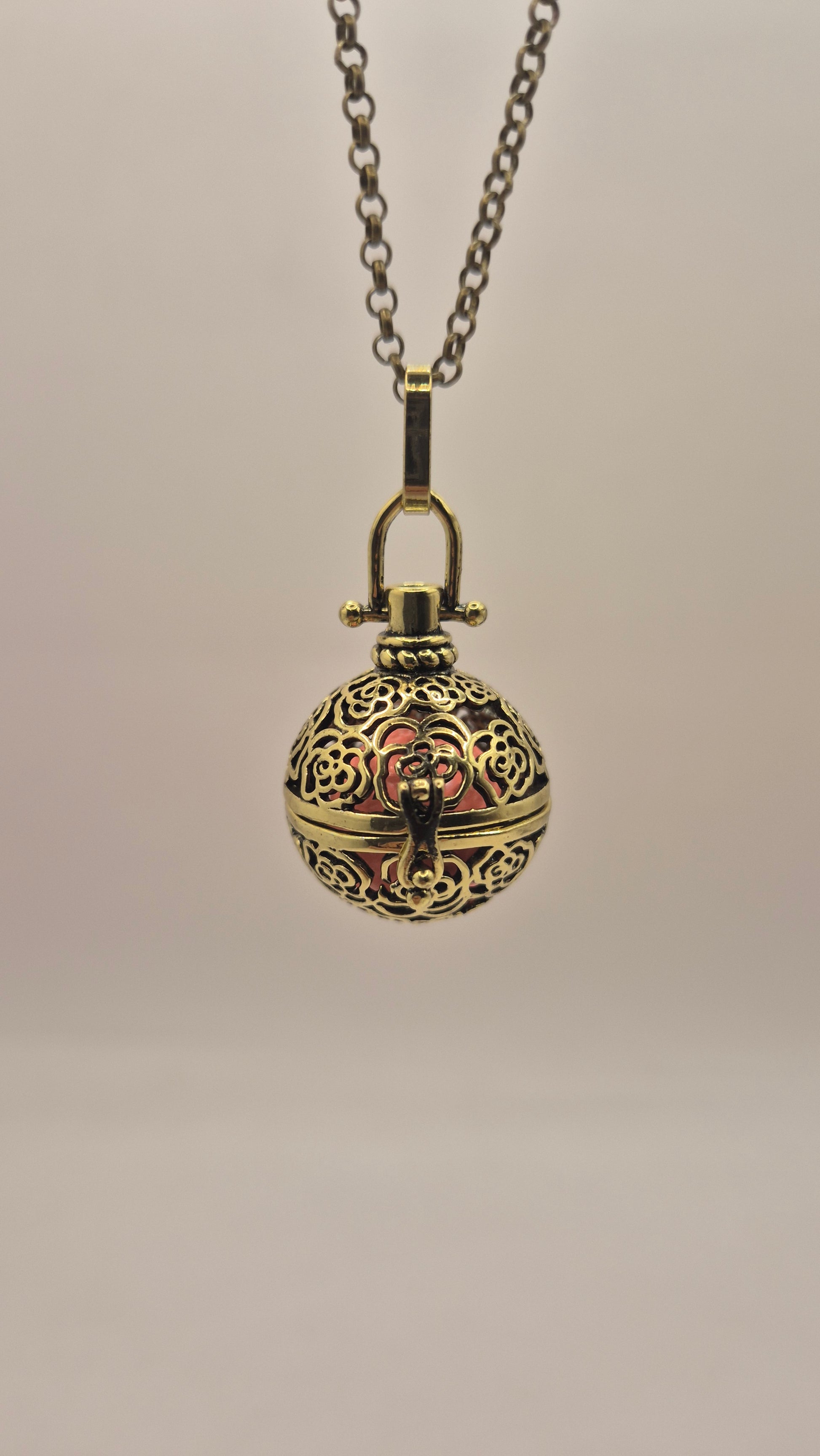 Llamador de Ángeles / Esfera DORADO ANTIGUO con Rosas / Cascabel Rosa