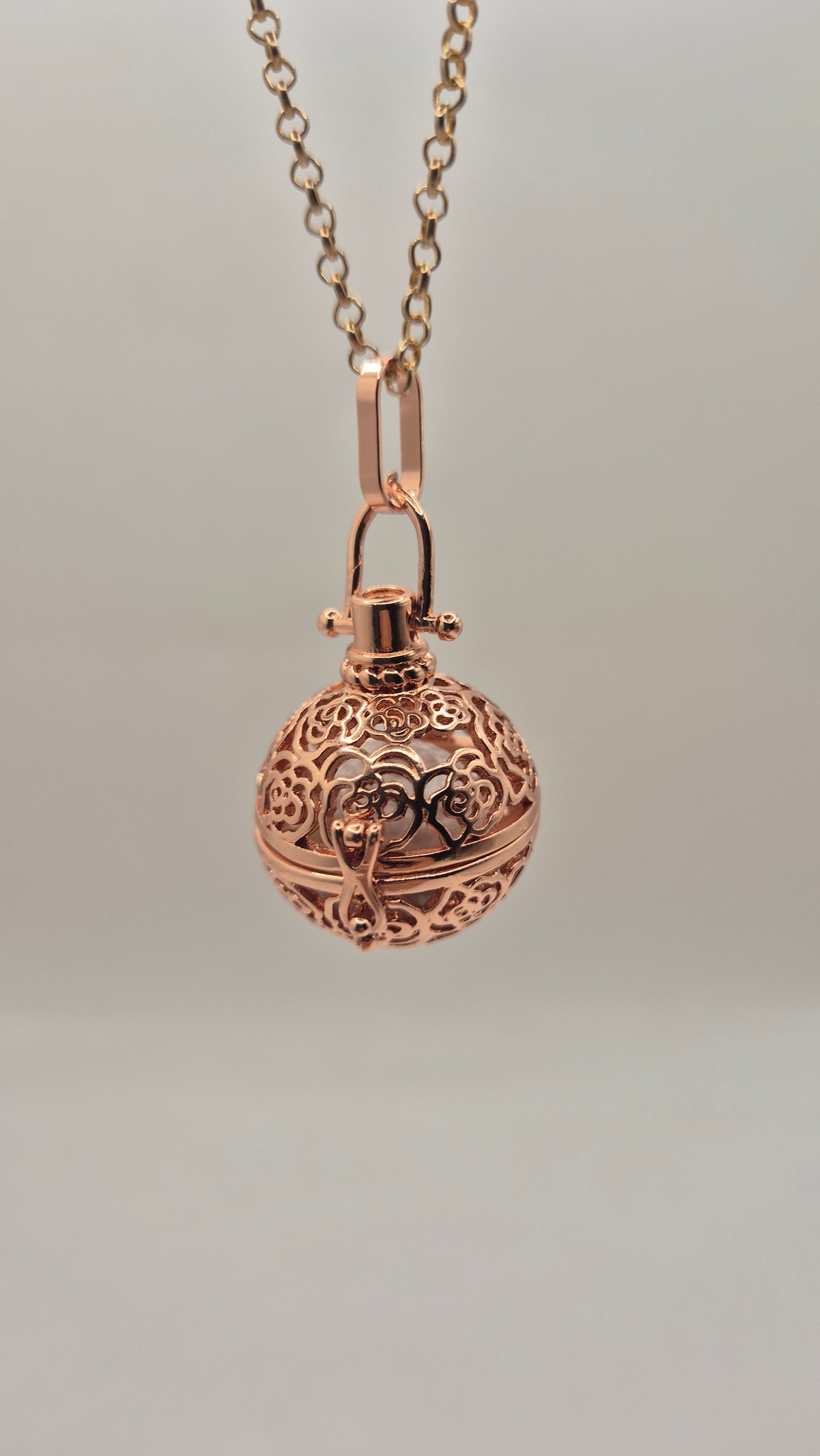 Llamador de Ángeles / Esfera ORO ROSA con Rosas / Cascabel Blanco