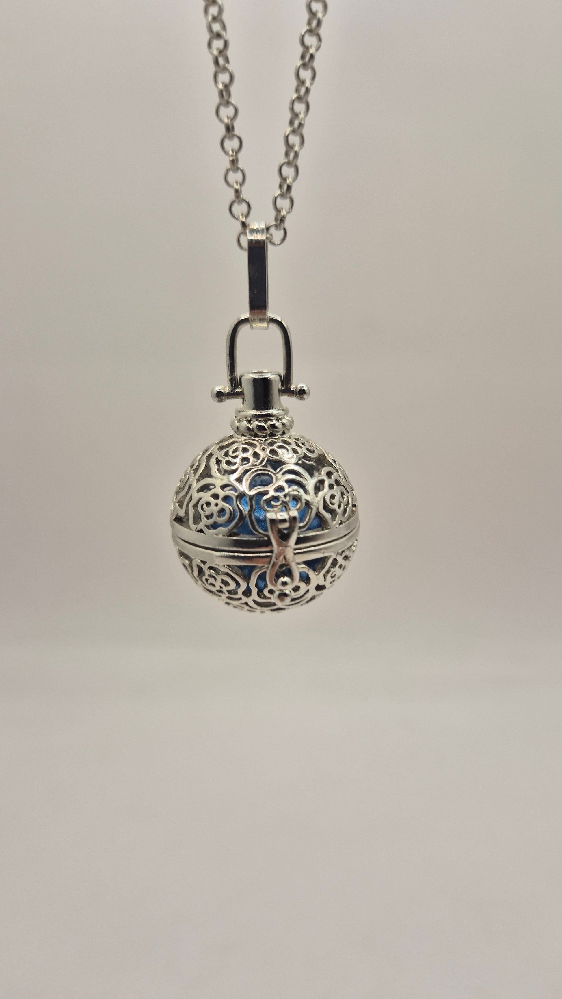 Llamador de Ángeles / Esfera PLATEADA con Rosas / Cascabel Azul