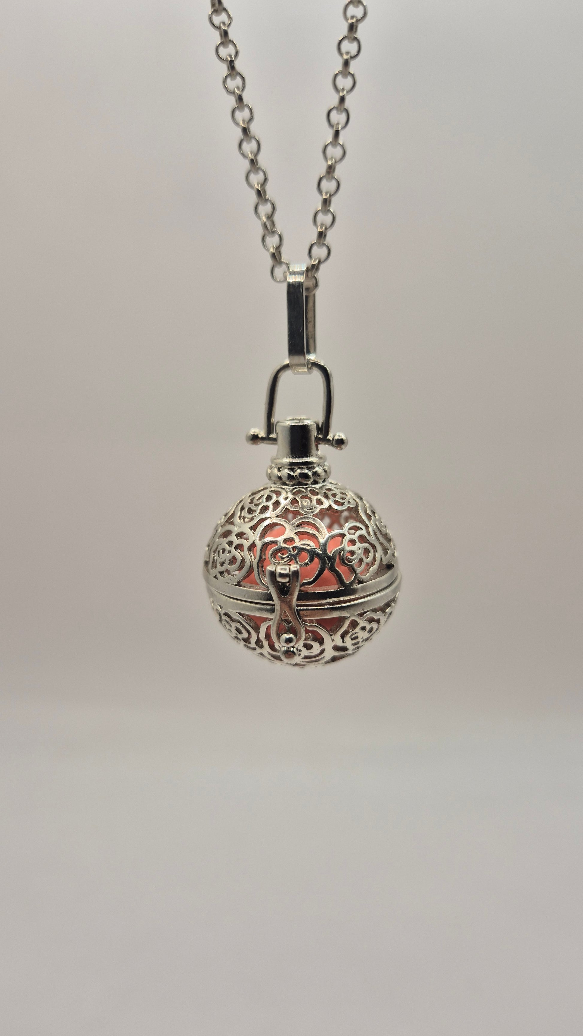 Llamador de Ángeles / Esfera PLATEADA con Rosas / Cascabel Rosa